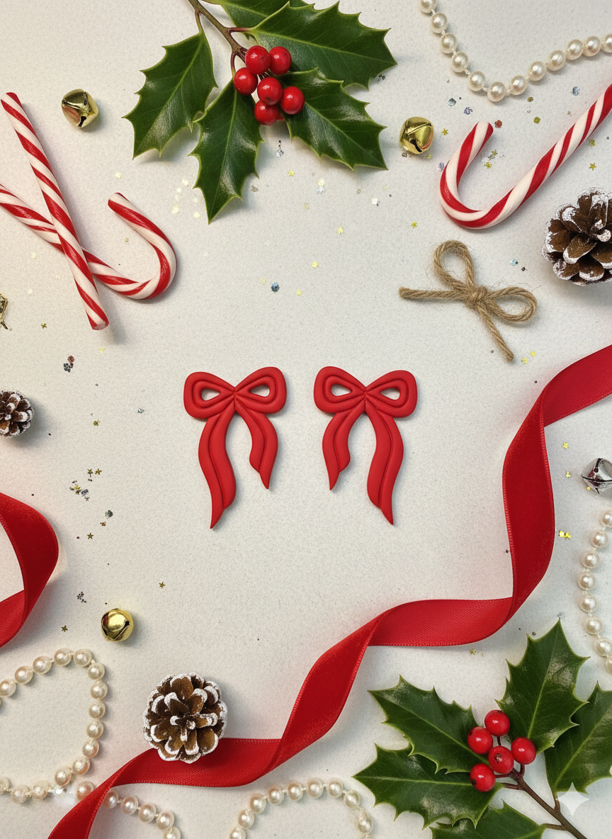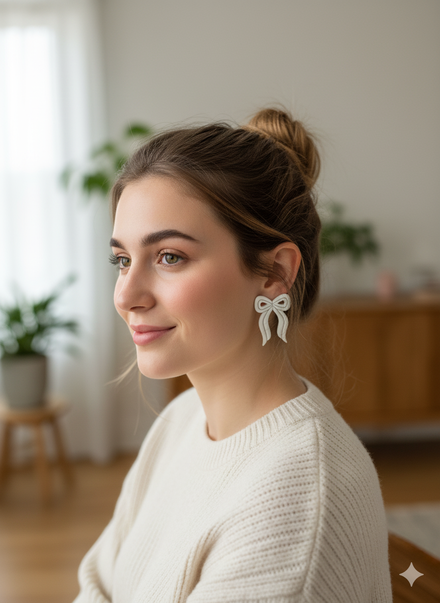 Add a touch of whimsical elegance to any outfit with these charming handcrafted bow earrings. Made from lightweight polymer clay, each pair features a beautifully sculpted ribbon design with intricate details and flowing tails. The soft, neutral color palette makes these versatile accessories perfect for both everyday wear and special occasions.